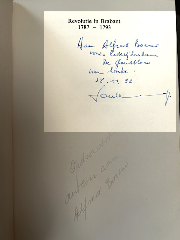 - Opdracht, gesigneerd en gedateerd door de auteur Fernand Vanhemelryck aan Alfred Borms.