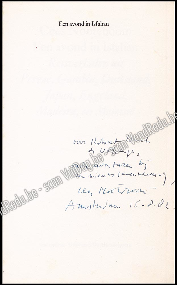 - Met een handgeschreven opdracht (13 woorden) aan Robert Lowet de Wotrenge pp, gesigneerd en gedateerd, Amsterdam 15-8-'82.