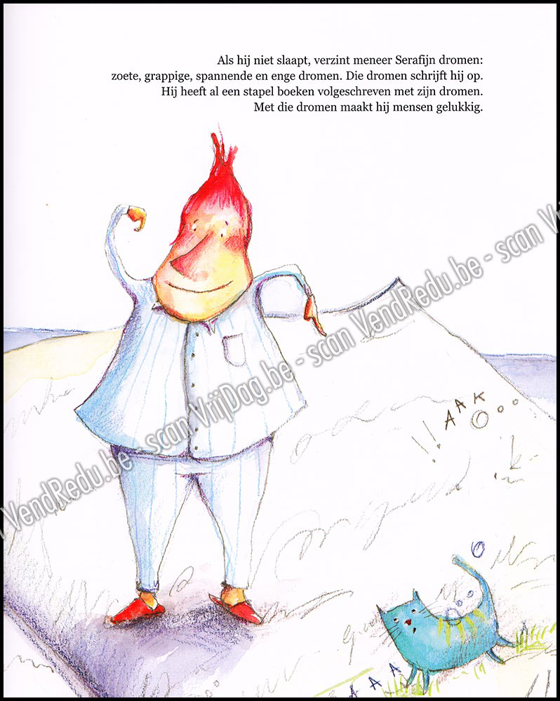 - Meneer Serafijn verzamelt dromen: zoete dromen, grappige, spannende en enge... Hij schrijft ze allemaal neer in dikke boeken. Met die dromen maakt hij mensen gelukkig. Op een dag wil meneer Serafijn een droom voor zichzelf verzinnen, maar dat lukt hem niet... .