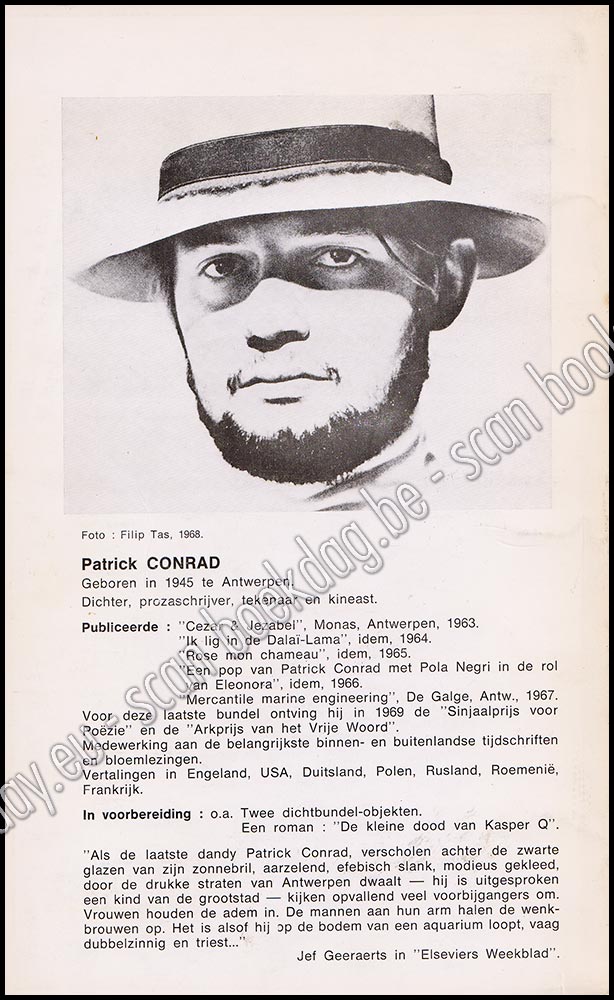 Year: 1970Place: AntwerpenPublisher: De GalgePrinter: Corneiillie, AntwerpenEdition: 1stLanguage: NLPages: 112Condition: FNCover condition: VGBinding: SCIllustrated: z/w illustraties.
