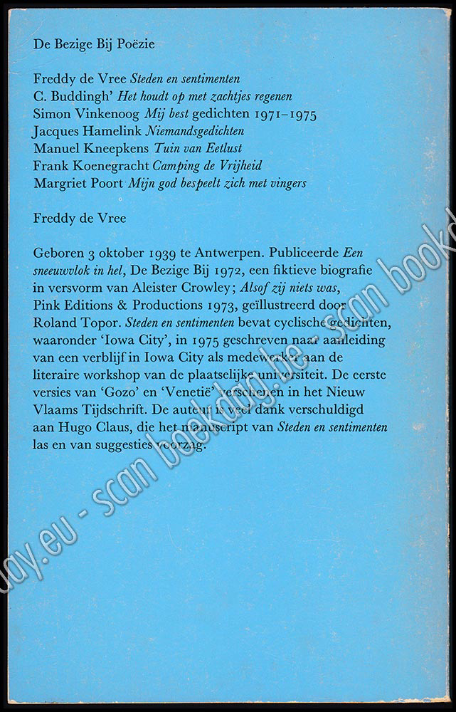 - Geboren 3 oktober 1939 te Antwerpen. Publiceerde Een sneeuwvlok in hel, De Bezige Bij 1972, een fiktieve biografie in versvorm van Aleister Crowley; Alsof zij niets was, Pink Editions & Productions 1973, geïllustreerd door Roland Topor.